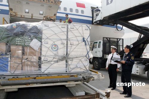 | 10月9日上午11时,中国政府向巴基斯坦地震灾区人民援助的救灾急需物资在北京首都国际机场装机,为保证此批物资的快速通关,北京海关特事特办,迅速启动紧急验放程序,专门在停机坪为援灾物资开辟“绿色通道”,对这批货物进行快速验放。12时许,所有救灾物资装机完毕,顺利通关。此批物资主要为救援设备、营救工具、后勤装备、生活保障用品、食品、医疗卫生品及药品、服装等,共15.3吨,总价值544万人民币。作者:雷虹