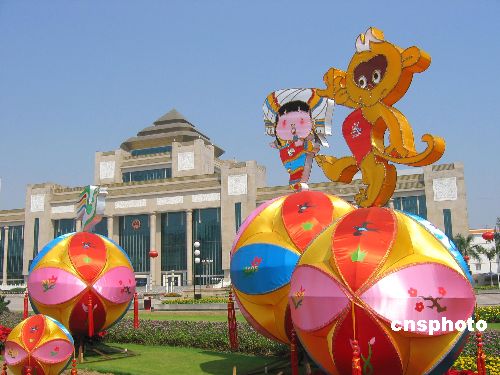十月十一日,距离第二届中国—东盟博览会、二○○五南宁国际民歌艺术节开幕还有八天。东道主广西壮族自治区首府南宁市已显出浓浓的节日气氛,街头广场上出现了壮族的吉祥物绣球造型以及博览会和民歌节的吉祥物“合合”和“歌娃娃”造型。作者:刘万强