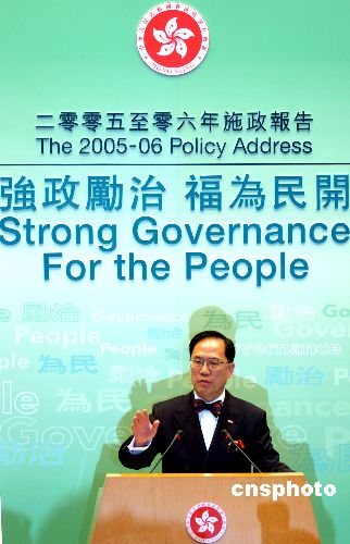 香港特别行政区行政长官曾荫权﹐十二日上午在立法会发表任期第一份施政报告后﹐下午在政府合署举行记者会﹐回答媒体关心的问题。作者:宋吉河