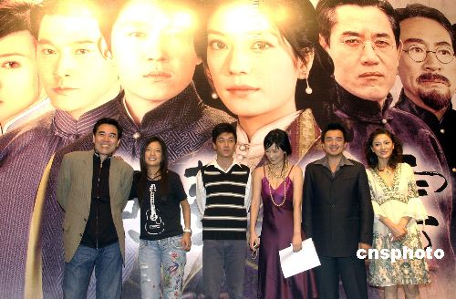 由赵薇主演的内地版电视连续剧《京华烟云》十月十二日在北京举行了首播仪式和媒体见面会。图为剧中主要演员陈宝国、赵薇等出席媒体见面会。作者:韩艺冰