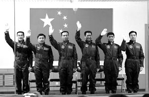杨利伟:当年我执行“神五”任务回来,反复说如果我的战友们上天飞行,他们会和我一样的。确实,这次入选执行“神六”任务的3个乘员组都是非常优秀的。费俊龙和聂海胜在“神五”选拔时都在前5名,海胜还进入了首飞梯队。费俊龙曾经当过飞行学院的教员,他的飞行时间在我们14个人中是最长的,身体素质也很好,从入伍到现在一直是甲等,训练非常扎实,操作技能特别突出。聂海胜给大家的印象是话不多,非常稳重。他们搭配在一起,可以从技术上互补。他俩的配合也是非常的默契,在天上他们会同舟共济。我们这次选拔,一共是4次考试,笔试、口试、面试,他们的成绩都排在前头,所以他们两个成为乘员组的第一梯队。