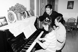 随“神六”飞船遨游太空的,有一张聂海胜和妻子聂捷琳陪伴女儿聂天翔弹钢琴的照片。端详着这张照片,聂捷琳开心地笑了……