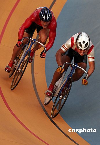 图:王启明勇超对手夺得自行车男子场地争先赛冠军