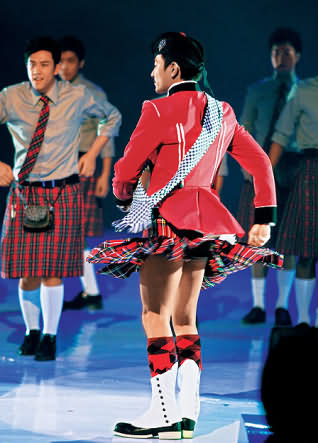 中新网10月17日电 据香港TVBS前晚举行《翡翠歌星贺台庆》,刘德华(华仔)表演“胸口碎大石”,郑中基帮他搬石头时,发生夹伤手指意外,接着刘德华与方力申穿苏格兰裙上演“欧陆风华群龙阵”,裙襬随着舞动飞起,也发生底裤外泄画面,全场尖叫连连。但风头还是被余文乐反串女人给比下去,他娇媚上演“错对鸳鸯舞倾情”,连他前任女友卢巧音也笑到当众落泪,掀起全场最高潮。