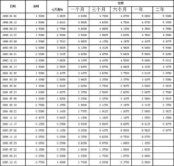 据显示,98年以来,中国对境内美元存款利率调整了24次。10月15日,境内美元活期存款利率调整为0.7750%。定期一个月、三个月、六个月、一年利率分别调整为1.75%、2.25%、2.375%和2.5%,这次是2005年的第四次调整,比8月23日调整后的利率再次提高0.5%。