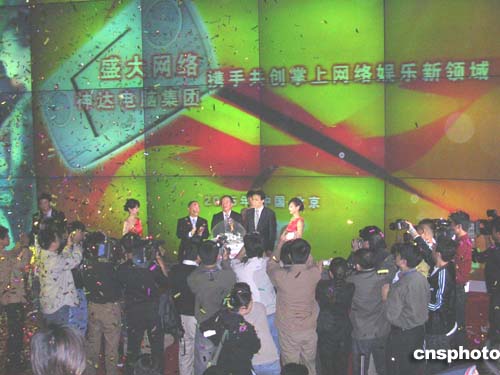 中新网北京10月17日电 中国领先的互动娱乐传媒公司——盛大互动娱乐有限公司,与全球IT及通讯产品研发及制造大厂神达电脑集团今日在北京中华世纪坛召开新闻发布会宣布:双方与英特尔公司紧密合作联合推出全球首款掌上(无线)网络娱乐终端产品——EZ Mini,同时标志着两家国际型企业携手迈进掌上网络娱乐终端新市场。该产品的网络游戏以及互动娱乐内容由盛大提供,产品的硬件由神达设计及开发并基于英特尔®XSCale技术平台,盛大网络与神达电脑集团旗下宇达电将共同通负责EZ Mini的全球市场行销工作。