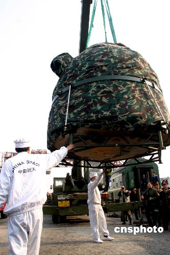 中新网北京十月十八日电(记者 孙自法)载有“神舟”六号载人飞船返回舱的专列,已于今天下午2时25分许,缓缓驶入北京某铁路专用站台。