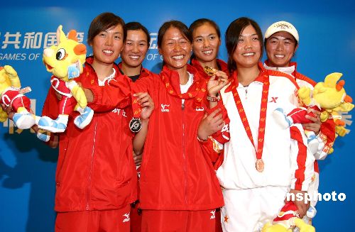 10月18日,经过九天的海上角逐,十运会女子470奥林匹克航线赛在江苏省连岛海上训练基地落幕。山东队选手李雪、于艳丽获得该项目金牌。浙江队闻一梅、于春燕获得第二名。解放军队王晓丽、黄绪蜂获得第三名。作者:王健民