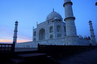朝霞升起时去,初升的一轮红日伴着朱木拿河袅袅的晨雾,仿佛要将泰姬陵从睡梦中唤醒,此时的它显得静静的。历经了几百年风雨沧桑,它早已处变不惊,泰然自若地梳洗打扮,准备笑迎八方来宾。中午时分前往,泰姬陵头顶蓝天白云,脚踏碧水绿树,在南亚一向耀眼的阳光映衬下,更出落得玲珑剔透,光彩夺目。等到傍晚时分,泰姬陵迎来了它一天中最妩媚的时候。斜阳夕照下,白色的泰姬陵开始从灰黄、金黄,逐渐变成粉红、暗红、淡青色,随着月亮的冉冉升起,最终回归成银白色,向啧啧称奇的游人谢幕,在月光的轻拂下,即将安寝的泰姬陵显得格外高雅别致和皎洁迷人。