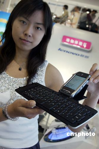 十月中旬,正在北京国际展览中心举办的中国国际通讯设备技术展上,联想移动推出的手机连接微型键盘等新品,小巧灵活的配件令许多参观者爱不释手。作者:任海霞