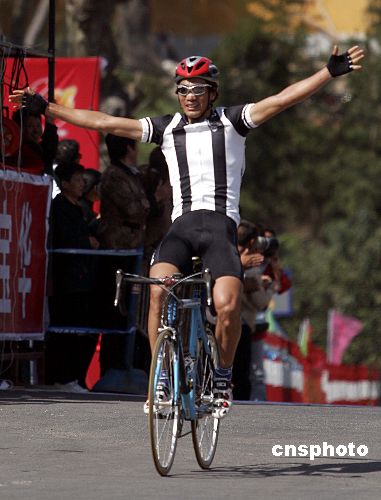 图:十运会公路自行车山东李富玉获男子个人赛冠军