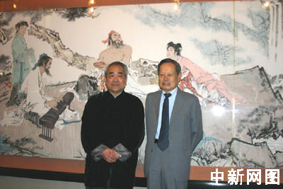 中新网10月24日电 10月12日的日本冈山市阳光灿烂,早上10点开始在冈山市名胜古迹西大寺方向就开来了一对长长的车队,车队停在了冈山“范曾美术馆”,从车上下来了两位世界级的华裔顶尖人物,一位是诺贝尔物理学奖获得者杨振宁先生,一位是国画大师范曾先生。杨振宁先生是应日本“仁科财团”的邀请到冈山进行演讲的,到了冈山,还没有到演讲时间,杨振宁就急切地在专程赶来的范曾先生的陪同下前来参观访问慕名已久的“范曾美术馆”。