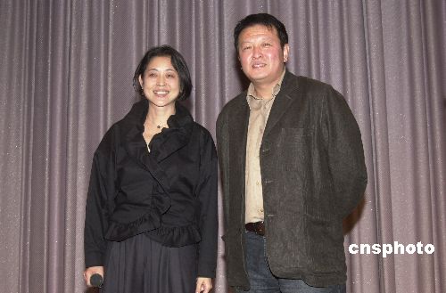 由杨亚洲执导、倪萍主演的反映普通民工感情生活的《泥鳅也是鱼》入选参赛本届东京电影节,图为他们在二十四日此间举行的该片上映活动之后,登台与观众见面。作者:王健