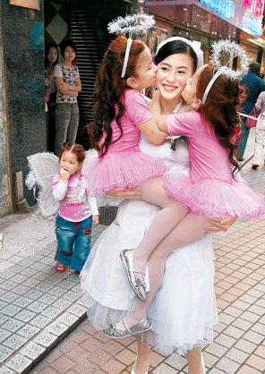 中新网10月25日电 据台湾媒体报道,张柏芝日前被爆怀孕,昨她拿着起司乳酪,大剌剌地到香港铜锣湾拍贺岁新片《最爱女人购物狂》,心情很不错,虽否认怀孕,却说不排斥怀孕,见到剧组混血双胞胎小女孩,母性大发,一把将两女孩抱起,男友Jeroen是老外的她直呼:“我最喜欢混血儿了。”