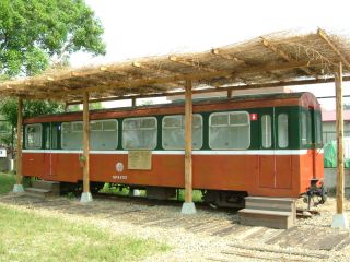这节编号SP6302的车厢,制造于1974年,1996年报废。嘉义林区管理处处长叶贤良表示,报废车厢当废铁卖实在可惜,于是想出这个方法加以重新利用。车厢厕所上方还用桧木搭设竹棚,种植爬藤,设计贴心又符合嘉义车库园区的铁道及林业形象,一举数得。