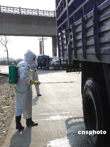 记者今天来到湾塘村时,周边三公里范围内划为疫区,并在多处设立哨口,所经车辆均需要严格消毒。进入疫情发生的湾塘村和平组的路口已经封锁,严禁一切外来人员出入。