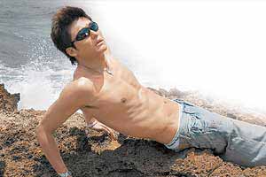 中新网10月31日电 据新明日报报道,模特儿出身的胡兵拥有好身材,他的第五本写真集在日本问世,两点尽露外,第三点被泳裤包得“激突”,不但引女人遐想,男同志看了更兴奋。对此,他半开玩笑地说:“身材太好,藏不住。”