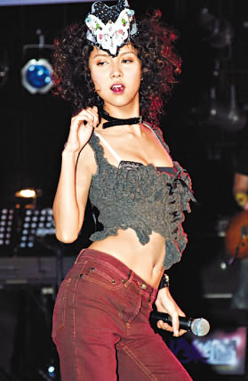 前晚Fiona于九龙湾展贸举行《加州红903热火乐团音乐会》,电了一个爆炸头的Fiona身穿低胸露脐装出场,更鲜有地谷胸展现小乳沟益Fans,又不时蹲低身拿水樽,快歌时更跳至Tube Top下滑露Bra,看得台下歌迷热血沸腾。不过Fiona却被森美嘲笑没身材及似长颈铁链族人。