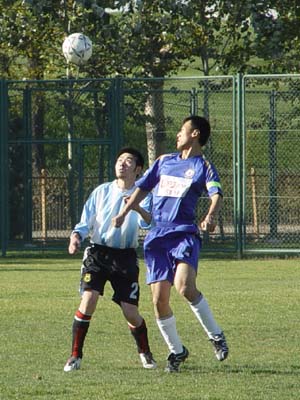 失球之后的中新网队讯即反攻,两分钟之后即见效果。第七分钟,中新网队在禁区右侧获得任意球机会,前锋九号赶在守门员出击之前头球后蹭,漂亮地将球吊向球门远点,一比一,双方又站到同一起跑线。