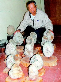 中新网11月1日电 “319枪击案”激起台中县石雕大师陈松创作灵感,着手雕刻“子弹绕着石头跑”系列,总共50件已于31日完成,将在明年初展出。