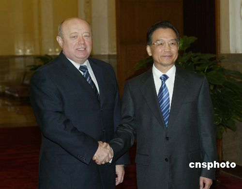中新社北京十一月三日电 (记者 孙宇挺)中国国务院总理温家宝与俄罗斯总理弗拉德科夫今天在人民大会堂举行了中俄总理第十次定期会晤。