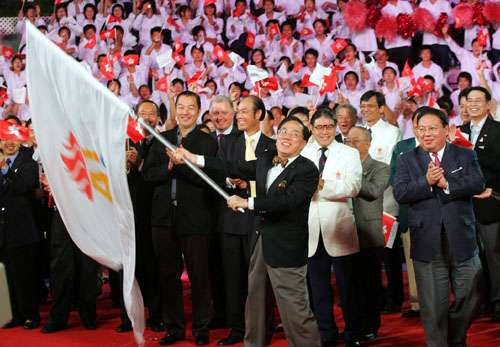 当晚,香港民政事务局局长何志平及第五届东亚运动会筹备委员会主席霍震霆,在澳门举行的第四届东亚运动会闭幕式中,代表下届主办城市香港领受东亚运动会会旗,然后由澳门将旗帜运抵香港,送往香港公园奥林匹克广场进行会旗移交仪式。
