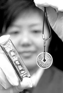 今年原料金价格持续上涨是狗年贺岁金条定价上涨的重要原因。王春利表示,菜百销售的贺岁金条每年都是全国最低的,估计今年其他地区贺岁金条价格要在140元以上。因此,每年贺岁金条在北京菜百首发时,都会有外地顾客赶到北京来“抢购”。