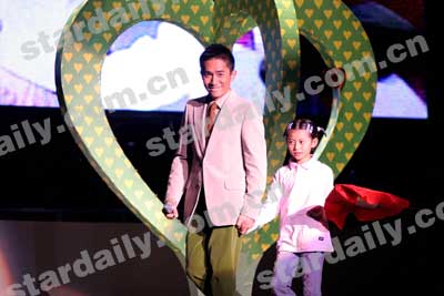 梁朝伟更是在众多北大附小的小朋友的陪伴下,现场挥毫泼墨,写下一个大大的“爱”字,并与小朋友每人书写的“爱”字共同组成一幅巨大的“百爱图”。
