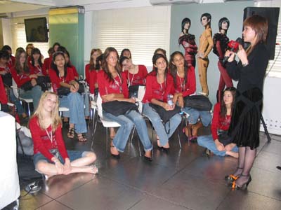 早上十点半,授课正式开始。虽说是模特儿们向老师学习,可是沙宣的艺术总监Gary Woo比学生们还要紧张,竟然在刚刚开始授课的时候,话语有些断断续续,惹得下面那群天真可爱的少女一阵哄笑,有的居然调皮地开始起哄。好在Gary 很快就适应过来,向模特儿们认真地介绍了沙宣的发展历史和在中国的基本情况。
