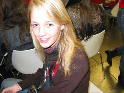 来自瑞士的模特儿Noreen,今年17岁,一头金黄的长发自然垂肩,十分可爱。以前曾经为某护发产品做过广告的她十分重视保护自己的头发,平日里除了日常的清洁之外,还要用护发素,调理液,以保证自己的头发能有优良的发质和一定的光泽度。虽然,以前Noreen从来没有用过沙宣的产品,但是今天的授课让她受益匪浅,她决定要开始试一试,看看沙宣会给她带来什么样的惊喜。