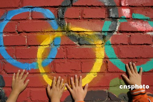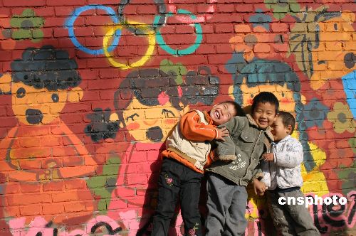 11月9日,在中国人民大学南路的主题为“奥运向我们走来”彩绘长墙吸引着人们的目光。据悉,为迎接即将到来的北京奥运倒计时1000天,中央美术学院、首都师范大学、育英小学、社区居民等400位志愿者在这面长700米、高2.5米的围墙上进行集体创作。目前,绘制工作基本完成,只等11月11日北京奥运会吉祥物发布,将其绘制上墙后宣布落成。作者:夏世焱