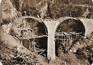 滇越铁路老照片:修建中的石拱桥