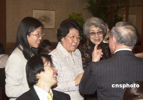 国务院侨务办公室主任陈玉杰一行十一月十日抵日访问,图为当地侨团和侨界知名人士为此举行欢迎集会上,陈玉杰主任与当地侨胞亲切交谈。作者:王健