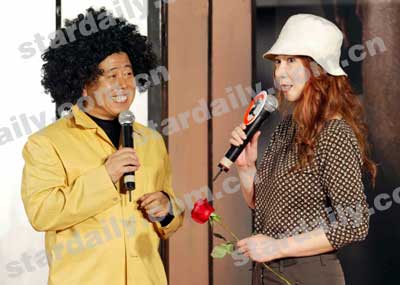 经过一番磨难,40岁的潘长江终于一身燕尾服衣着光鲜地登场了,而且身后还有20多个“新娘”紧追不放。发布会进行到这里,潘长江才开始隆重介绍自己40岁出版的专辑《男人40一枝花》。他说这张专辑不但要全亚洲发行,全世界发行,还要全宇宙发行。“等明年神七上天的时候,我让航天员带几张走,给太空中美国空间站的人送去。”