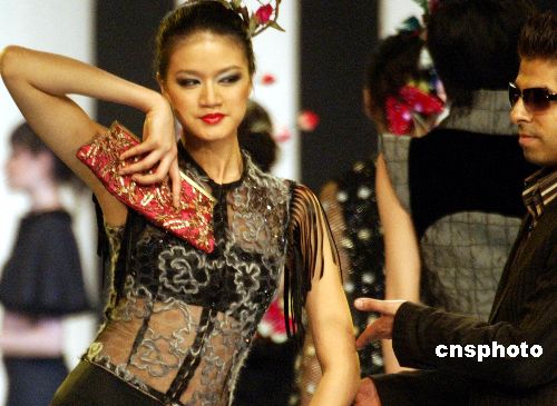 十一月十三日晚,正在广东虎门举行的“第十届中国(虎门)国际服装交易会”上,来自美国的服装设计师尤利尔.桑斯推出时装专场展示会,他创新地在传统的布料中加入强烈的风格和视觉效果。