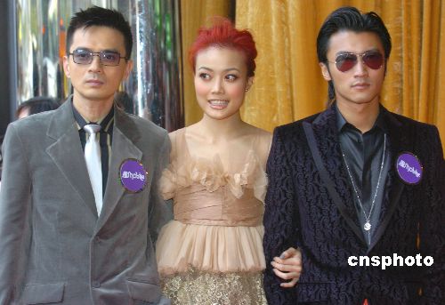中新网11月15日电 据香港媒体报道,英皇娱乐全线歌手艺人加盟“星Mobile”,为隆重其事,艺人纷纷穿上盛装及坐劳斯莱斯、保时捷跑车出现昨日的记者会,“真空”容祖儿以短裙上阵、Twins穿一字肩晚装、郑希怡的低胸装最性感﹔平时对服装都不大理会的谢霆锋也穿上秋冬最流行的紫色西装出现,黄耀明、王杰和专诚来港的陆毅均以西装出席。