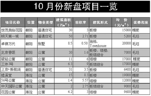 考察一下10月新推出的22个新盘,毫无悬念的是,朝阳区仍以7个新盘的绝对优势稳居第一,海淀4个、丰台3个紧随其后,接下来是昌平、顺义,各为2个,很久没有项目推出的东城、石景山、房山、涿州也各推出一个项目,预计朝阳区还将长期占据冠军宝座。但总的来说,新盘分布较广,没有形成新的热点区域。