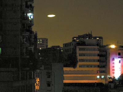中新网11月22日电 据广州日报报道,昨天晚上,有一个不明飞行物突然出现在广东省广州上空,从芳村往天河方向飞去,通体发出黄色光芒,引起了许多市民注意,还有热心者用数码相机拍下了这一画面。目前这一不明飞行物究竟为何物尚无答案。