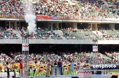 中新网香港十一月二十七日电 今天下午三点十分,在三万多名香港市民的如潮欢呼和热切期待中,身着航天服的“神六”征空双雄费俊龙、聂海胜出现在香港大球场,乘坐敞篷车绕场一周,拉开了“全港欢迎神舟六号载人航天飞行访港代表团大汇演”的序幕。
