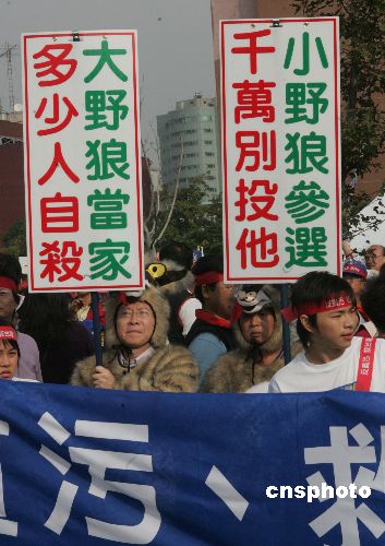 中新网11月27日电 中国国民党今天举办“反贪污、救台湾”全民大游行。连战、王金平、马英九同台呛声,批评民主进步党执政无能、弊端连连;呼吁民众支持国民党候选人,用选票表达大家心中不满。