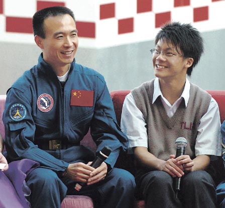 陈易希雀跃地说,很高兴神六双雄赞赏他的小小科技成就。他○三年与杨利伟会面时只能远望,但今次能够近距离与双雄对话,觉得他们很亲民、很谦虚,只可惜自己的普通话并不太好。