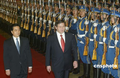 图:胡锦涛会见蒙古总统恩赫巴亚尔