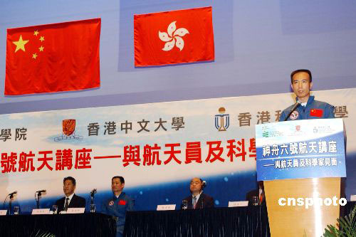 今天,在香港中文大学,面对来自全港八所院校的逾千师生,中国航天双雄费俊龙和聂海胜,以及中国载人航天工程副总指挥胡世祥等多位科学家,既满怀深情地描述了“神六”飞天前后的心路历程与情感体验,又以轻松幽默的语言透露了多个此次航天任务中的趣闻秘辛。
