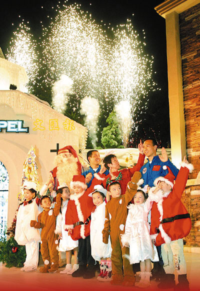 两位航天员在台上作简短祝愿—费俊龙祝愿香港同胞安居乐业、心想事成;而聂海胜则祝愿香港明天更加好,前景灿烂。费俊龙和聂海胜将愿望写在许愿卡上,然后在8位分别扮演圣诞老人、雪人、圣诞鹿、小天使的小朋友及专程由芬兰来港的圣诞老人陪同下将许愿卡挂在许愿树上,现场市民不断发出热烈的欢呼声和掌声。航天员的愿望随即显示在大型屏幕上,配上小型舞台烟火效果、飘雪、轻快的圣诞歌,现场充满温馨的气氛。双雄分别与圣诞老人及小天使拍照后才离去。