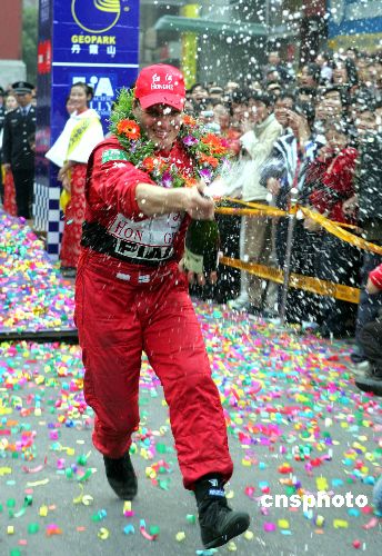 朱瑟夺得冠军并激动地喷洒香槟。记者:赵振清