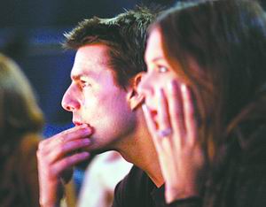 而每到惊险镜头时,凯蒂总忍不住惊叫起来,而阿汤哥则报以热烈鼓掌。而只有在这时,他牵着凯蒂的手才有所放松———而一待鼓掌结束,他的手马上又乖乖回到了凯蒂的手中,全程紧握。
