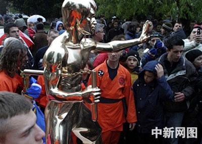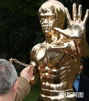 图:波黑李小龙铜像惨遭破坏:双节棍变"单节棍"