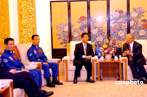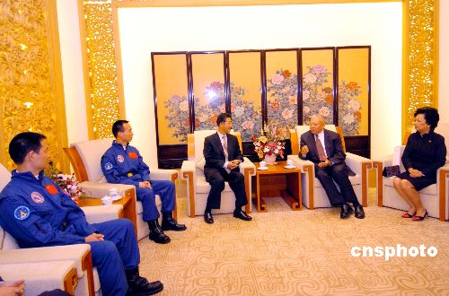 11月29日,全港政协副主席董建华在中联办会见“神六”代表团,并与“神六”代表团团长胡世祥及航天员费俊龙、聂海胜亲切交谈。10月12日董建华伉俪曾在酒泉现场观看神舟六号的发射。 作者:洪少葵