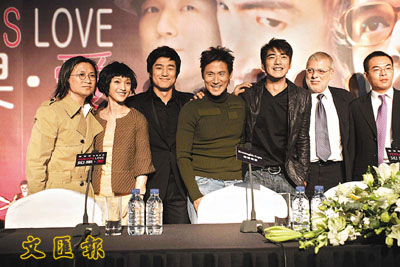 中新网11月30日电 据香港媒体报道,陈可辛执导的歌舞片《如果.爱》昨天展开为期十日的内地、星马和香港的“亚洲宣传之旅”,首站在上海举行,昨天下午,戏中四位主角金城武、张学友、周迅,池珍熙和导演陈可辛携手出席发布会,与来自内地超过二百位媒体人员会面。