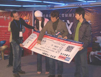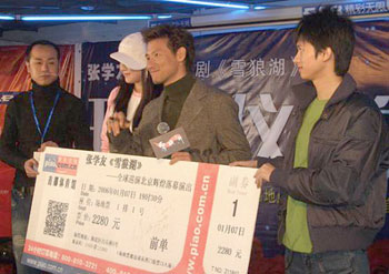 最受欢迎的华语音乐剧《雪狼湖》即将结束长达一年的全球巡演,于2006年1月7日在北京举行落幕演出。今(30日)上午,艺术总监、男主角张学友亲临开票仪式现场,为《雪狼湖》的最后一场演出签名开票。